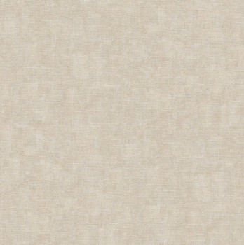 Jemně plastická vliesová tapeta s vinylovým povrchem, imitace hrubší tkaniny v odstínech pololesklé šedo-béžové.