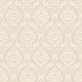 Jemně plastická, pololesklá vliesová tapeta s vinylovým povrchem, zámecký vzor v odstínech krémové a béžové.