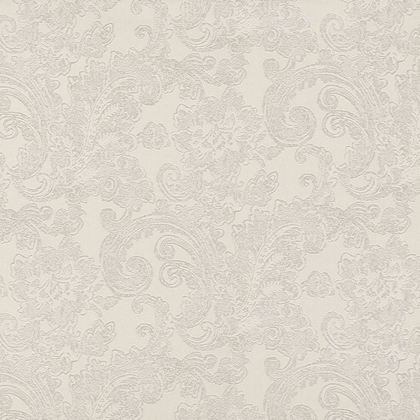 Vliesová tapeta s vinylovým povrchem. Plastický lesklý krémový ornamentální vzor na pololesklém krémovém podkladu.