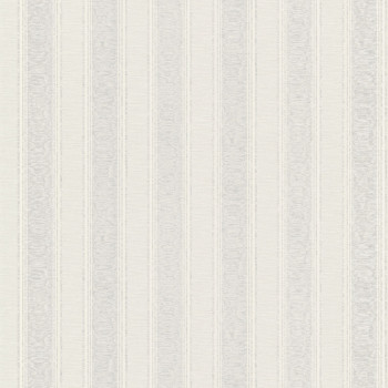 Jemně plastická vliesová tapeta s vinylovým povrchem, pruhy v odstínech pololesklé šedé, smetanové a bílé.