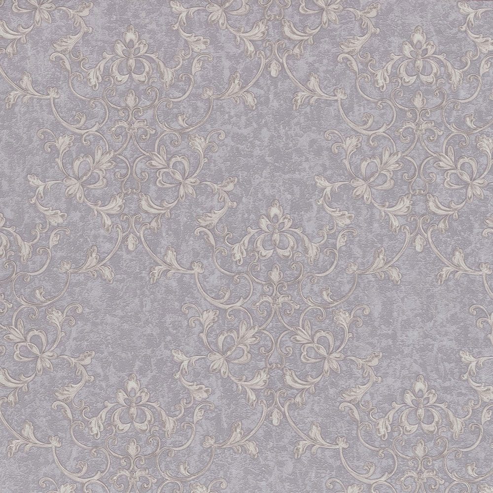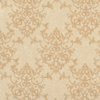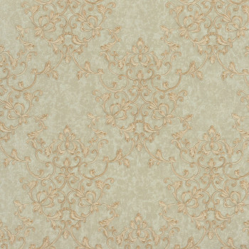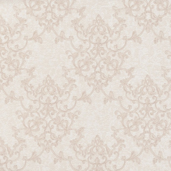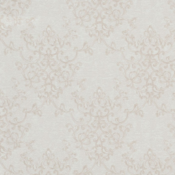 Vliesová tapeta s vinylovým povrchem. Plastický béžový ornamentální vzor na šedém pololesklém podkladu.