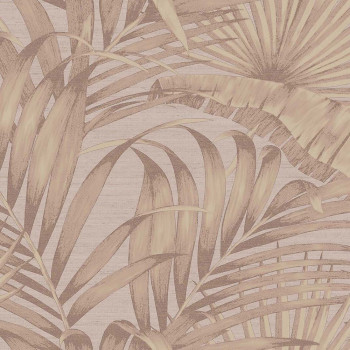 Luxusní, plastická, vliesová tapeta s vinylovým povrchem, odstíny hnědé / tmavé pudrové, hnědo-zlaté tropické listy.