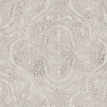 Luxusní, plastická, vliesová tapeta s vinylovým povrchem, podklad šedý, světle béžový ornamentální zámecký vzor.
