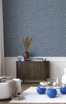 Luxusní vliesová tapeta s vinylovým povrchem, efekt tkaniny moaré, odstíny modré, pololesk.