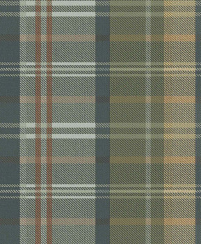 Vliesová tapeta na zeď, imitace tartanové látky v odtínech zelené a hnědo-bronzové.