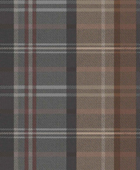 Vliesová tapeta na zeď, imitace tartanové látky v odtínech hnědé, černé, šedé a vínové.