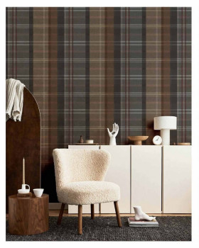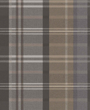 Vliesová tapeta na zeď, imitace tartanové látky v odstínech černé, šedé a khaki.