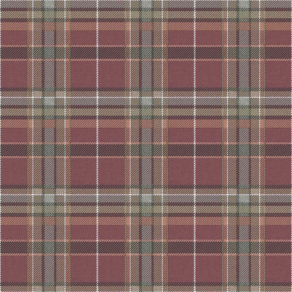 Vliesová tapeta na zeď, imitace tartanové látky v odstínech vínové, šedé a khaki.