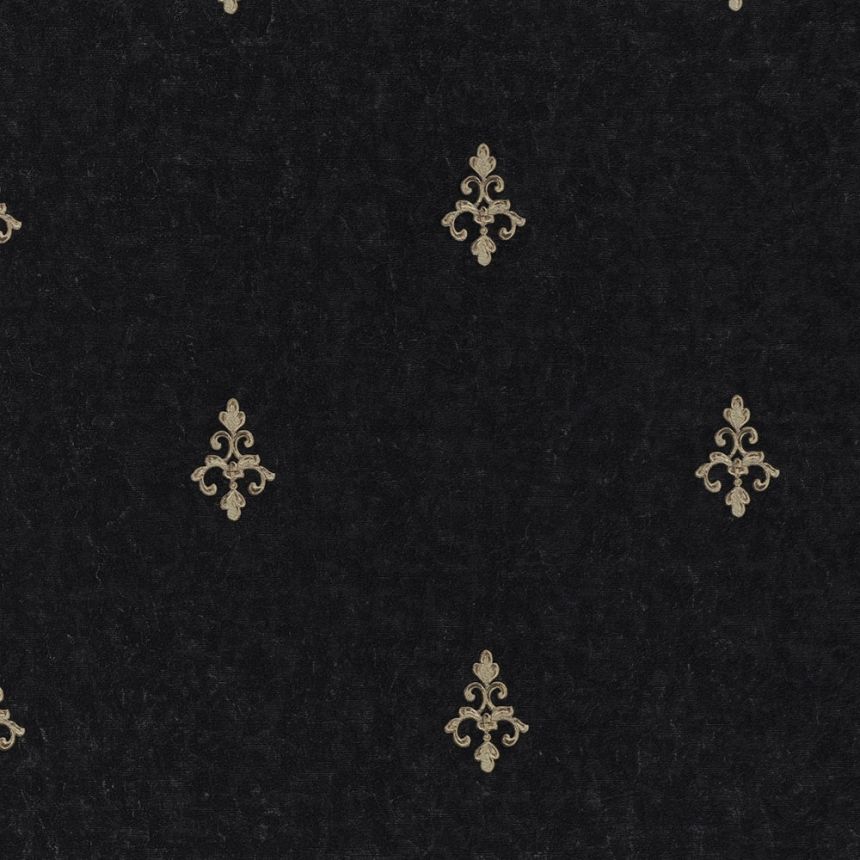 Vliesová tapeta s vinylovým povrchem. Plastický zlatý ornamentální vzorek na černém pololesklém podkladu.