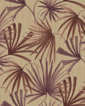 Vliesová tapeta na zeď, vzor listů v odstínech vínové, podklad v odstínech hnědé, výrazně plastická textura.
