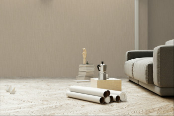Vliesová tapeta na zeď, imitace látky v odstínech šedo-hnědé, výrazně plastická textura.