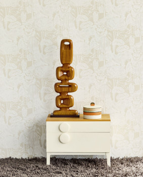 Vliesová tapeta na zeď, motivy listů a stromů v odstínech béžové.