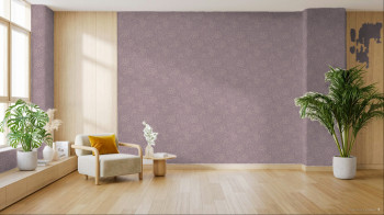 Vliesová tapeta na zeď, netradiční květinový vzor v odstínech fialové, plastická textura.