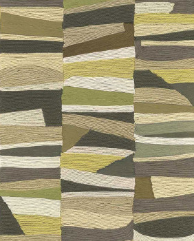 Vliesová tapeta na zeď, imitace rustikální rohože, odstíny zelené, béžové a hnědé.
