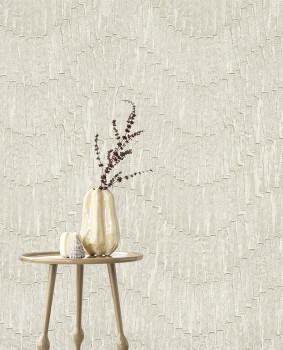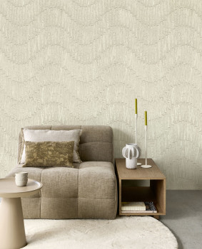 Vliesová obrazová tapeta na zeď, odstíny béžové a šedo-béžové, design vln imitujících rustikální textílii.