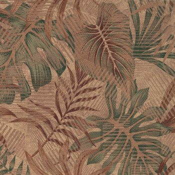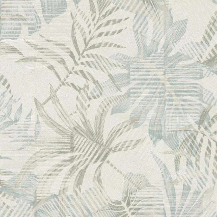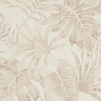Design tropických listů, podklad netradiční jemně plastický geometrický vzor v odstínech pololesklé krémové. Snadno zkombinujete se souvisejícími vzory. Podklad vlies, povrch vinyl.