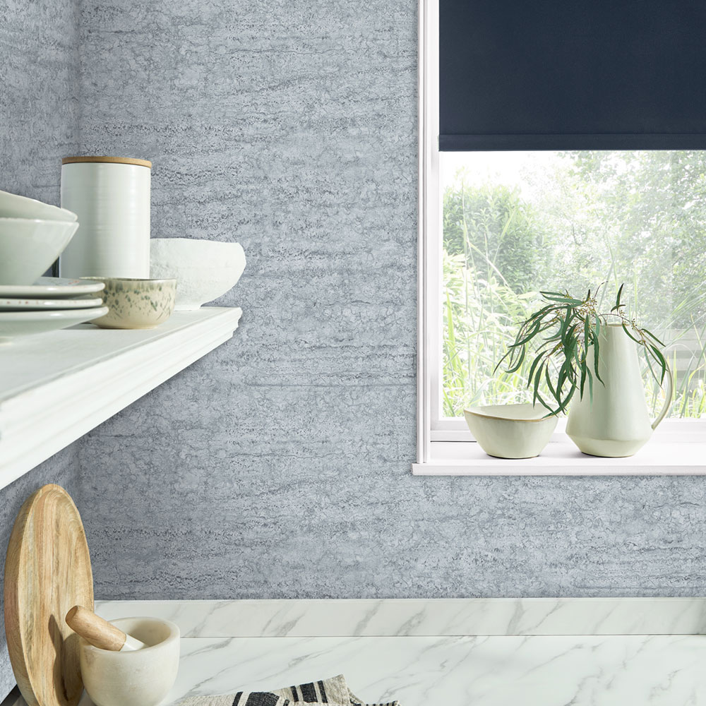 Vliesová tapeta na zeď, design kamene, metalický pololesk, odstíny modré.