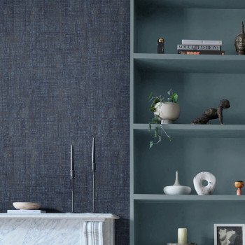 Hladká vliesová tapeta na zeď, texturovaný design v odstínech tmavě modré, prosvítající podtóny hnědé.