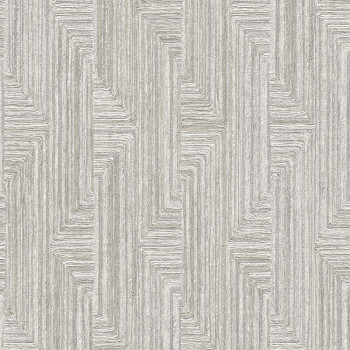 Vliesová tapeta s vinylovým povrchem, geometrický vzor, provázková textura, odstíny šedé, zlato-béžové akcenty.