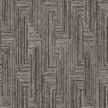 Vliesová tapeta s vinylovým povrchem, geometrický vzor, provázková textura, odstíny černé, šedé, stříbrné