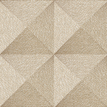 Vliesová tapeta s vinylovým povrchem, jemně plastická textura, odstíny hnědé a béžové, odlesky a odstíny vytváří geometrický vzor.