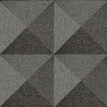 Vliesová tapeta s vinylovým povrchem, jemně plastická textura, odstíny hnědé a černé, odlesky a odstíny vytváří geometrický vzor.