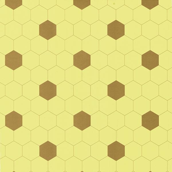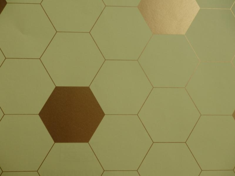 Vliesová tapeta. Vzor zlatých hexagonů na limetkově zeleném podkladu.