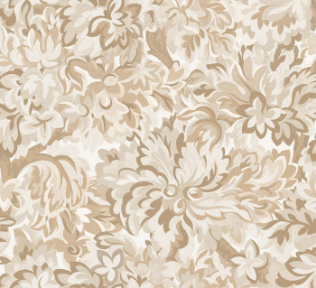 Hladká vliesová tapeta na zeď, květinový vzor v odstínech hnědé a béžové, mat a velmi jemný pololesk.
