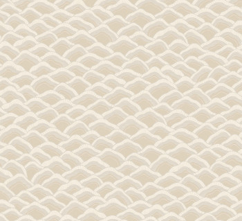 Vliesová tapeta na zeď, jemně plastický, pololesklý vzor inspirovaný horskou krajinou, odstíny béžové a krémové.