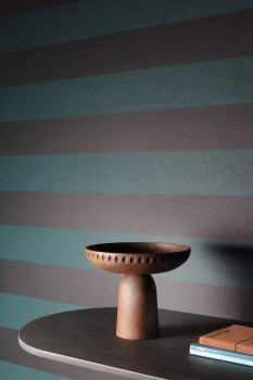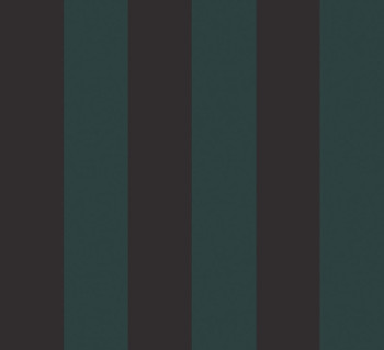 Hladká vliesová tapeta na zeď, pruhy v odstínech temně zelené a černé.