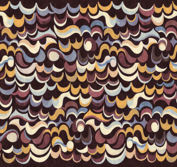 Vliesová obrazová tapeta na zeď, vlnkový vzor v odstínech hnědé, modré, vínové, okrové.