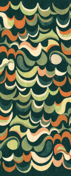 Vliesová obrazová tapeta na zeď, vlnkový vzor v odstínech zelené a cihlově červené.