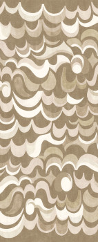 Vliesová obrazová tapeta na zeď, vlnkový vzor v odstínech zelené a cihlově červené.