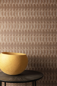 Vliesová tapeta na zeď, jemně plastické etno vzory, odstíny hnědo-béžové, místy pololesklé akcenty.