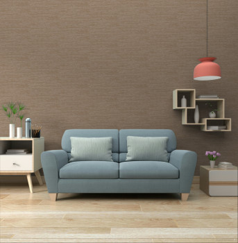 Vliesová tapeta na zeď, imitace hrubší tkaniny, odstíny hnědé a šedo-béžové s pololesklými akcenty.