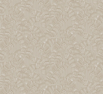 Vliesová tapeta na zeď, matný béžový podklad, pololesklé bílo-krémové linie tvoří listy.