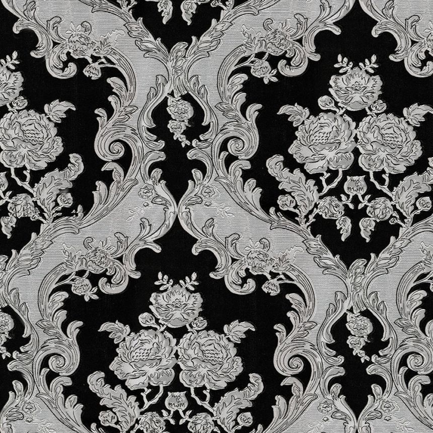 Luxusní černá vliesová tapeta s vinylovým povrchem, střídání textur, pololesklý efekt moiré.