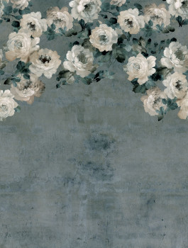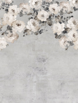 Vliesová tapeta na zeď, květinový motiv, odstíny šedé a krémové.