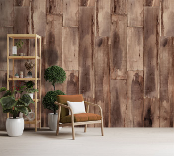 Vliesová tapeta na zeď, imitace dřevěných palubek, prken, odstíny hnědé.