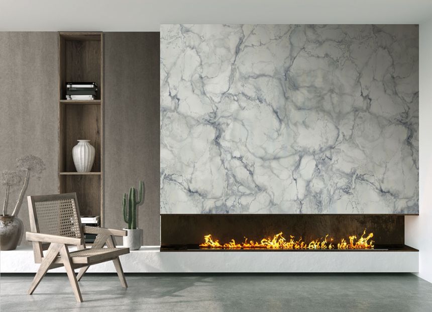 Vliesová tapeta na zeď, mramor v odstínech šedé, šedo-modré.