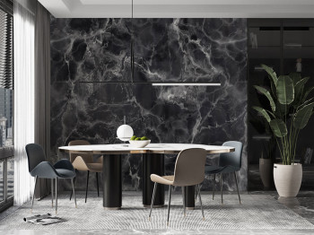 Vliesová tapeta na zeď, mramor v odstínech černé a šedé.