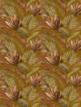 Vliesová tapeta na zeď, tropické listy v odstínech hnědé a zelené.