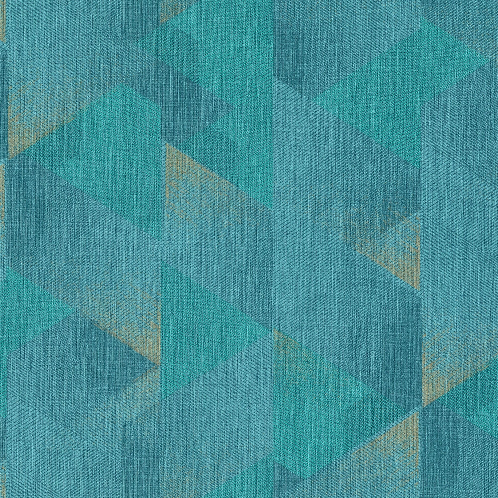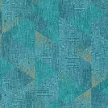 Vliesová, tyrkysová, tapeta s geometrickým vzorem.