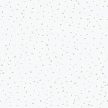 Vliesová tapeta na zeď, motivy barených puntíků / kaněk v odstínech zelené, růžové, šedo-béžové a žluté, textura velmi jemné látky.