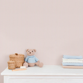 Vliesová tapeta na zeď, růžovo-bílé proužky, textura velmi jemné látky.