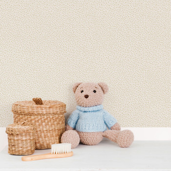 Vliesová tapeta na zeď, motiv kapek, flíčků v odstínech béžové, textura velmi jemné látky.