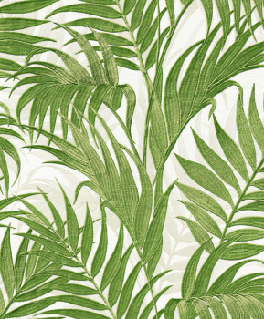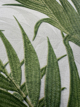 Luxusní vliesová tapeta s vinylovým povrchem, šedo-bílý podklad, plastické zelené listy.