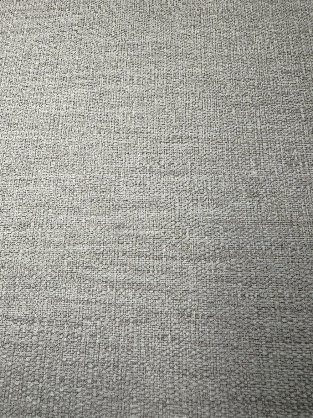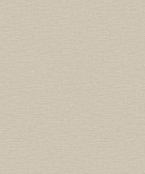 Vliesová tapeta s vinylovým povrchem, imitace hrubší látky v odstínech šedo-béžové.