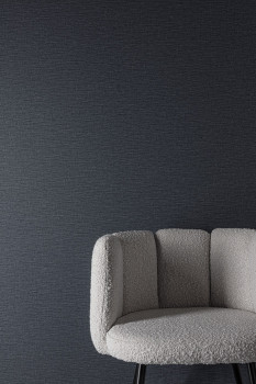 Vliesová tapeta s vinylovým povrchem, imitace hrubší látky v odstínech tmavě modré.