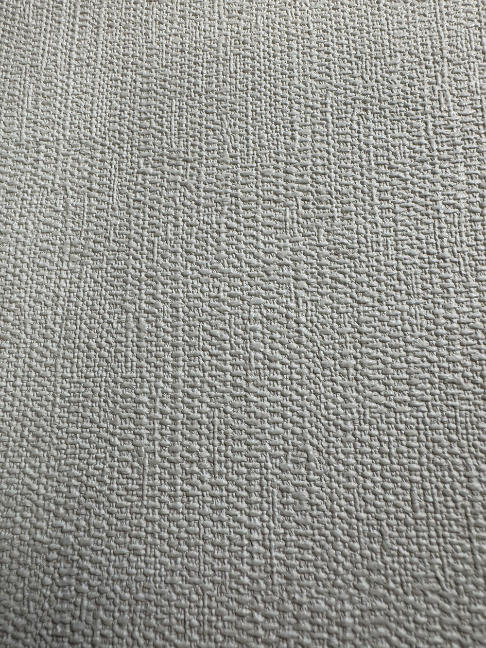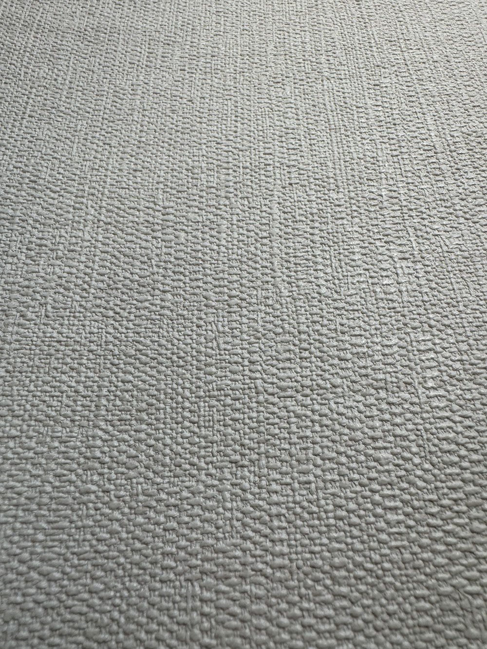 Vliesová tapeta s vinylovým povrchem, imitace hrubší látky v odstínech krémové.